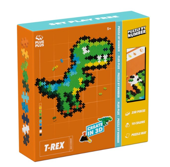 Ga terug naar de tijd van de dinosauriërs met de Plus-Plus Puzzle by Number T-Rex! Door kleuren te koppelen aan nummers bouw je stap voor stap een indrukwekkende T-Rex in mozaïekstijl. Een creatieve combinatie van puzzelen en bouwen die kinderen spelenderwijs laat leren én hun fantasie prikkelt. Klaar met puzzelen? Gebruik de bouwsteentjes opnieuw voor je eigen dino-avonturen of 3D-creaties!
