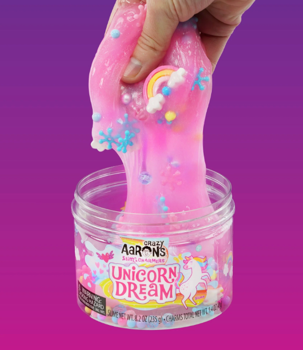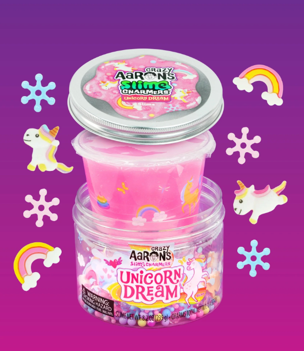 Zacht, rekbaar en heerlijk speelplezier! Crazy Aaron’s® Slime Charmers bevatten unieke slijmsoorten met heerlijke geuren en uitzonderlijke texturen. Laat je betoveren door deze slijmsoorten, geïnspireerd op knutselen! Elke slijmsoort bevat thematische bedeltjes en texturen om toe te voegen. Dompel jezelf onder in het fascinerende spel van slijm – draai, trek, knijp en plooi. Welke kies jij?