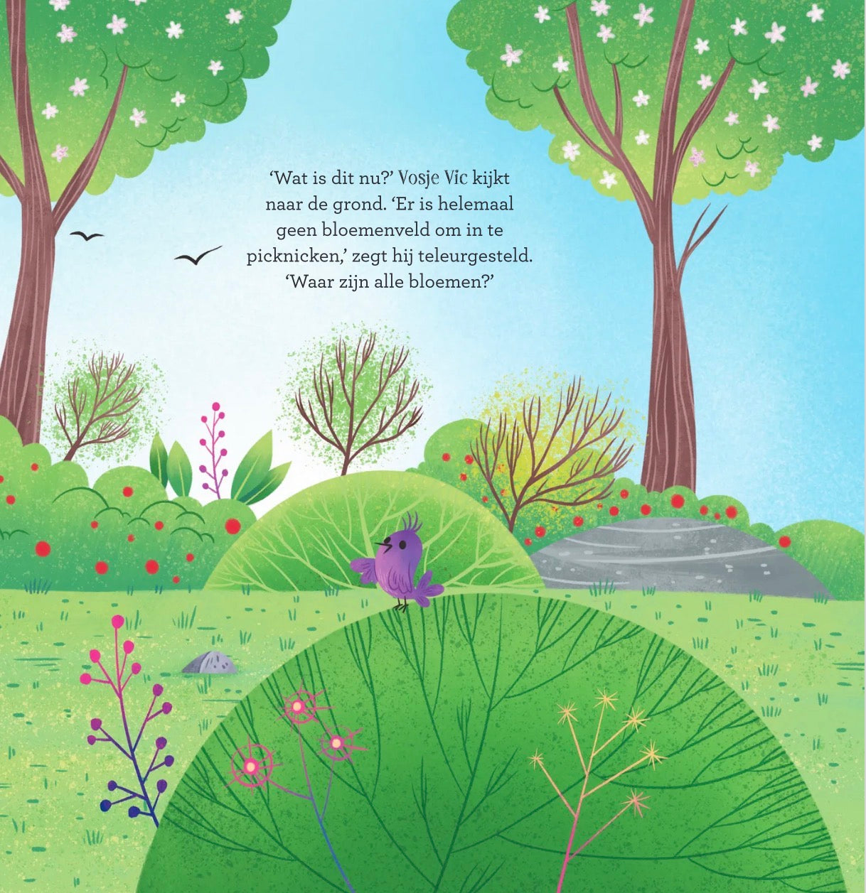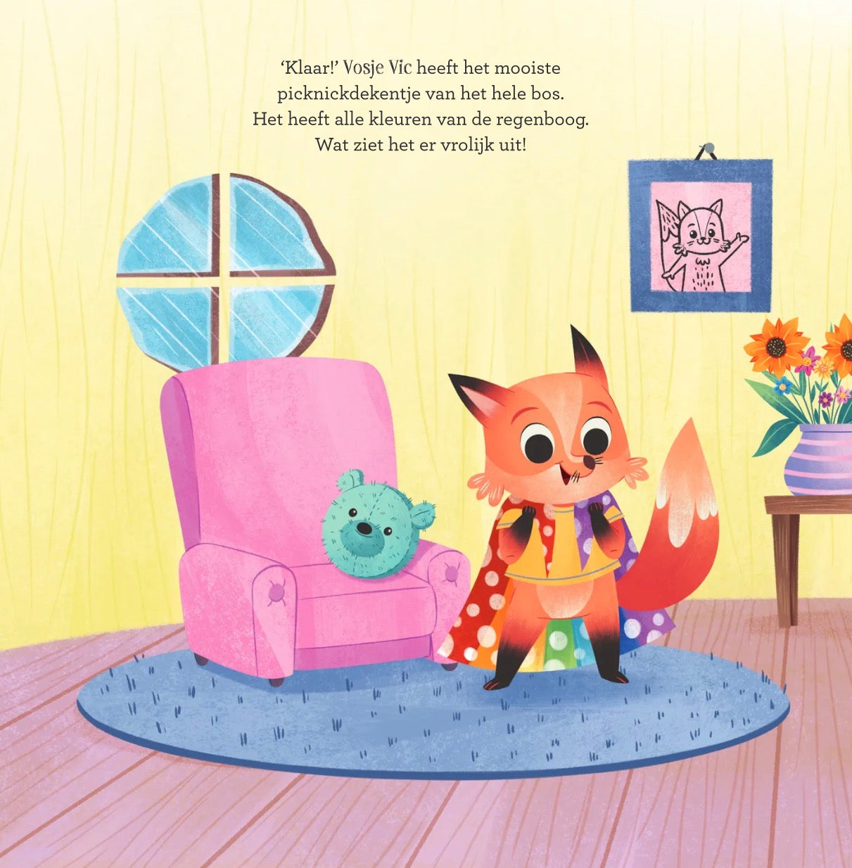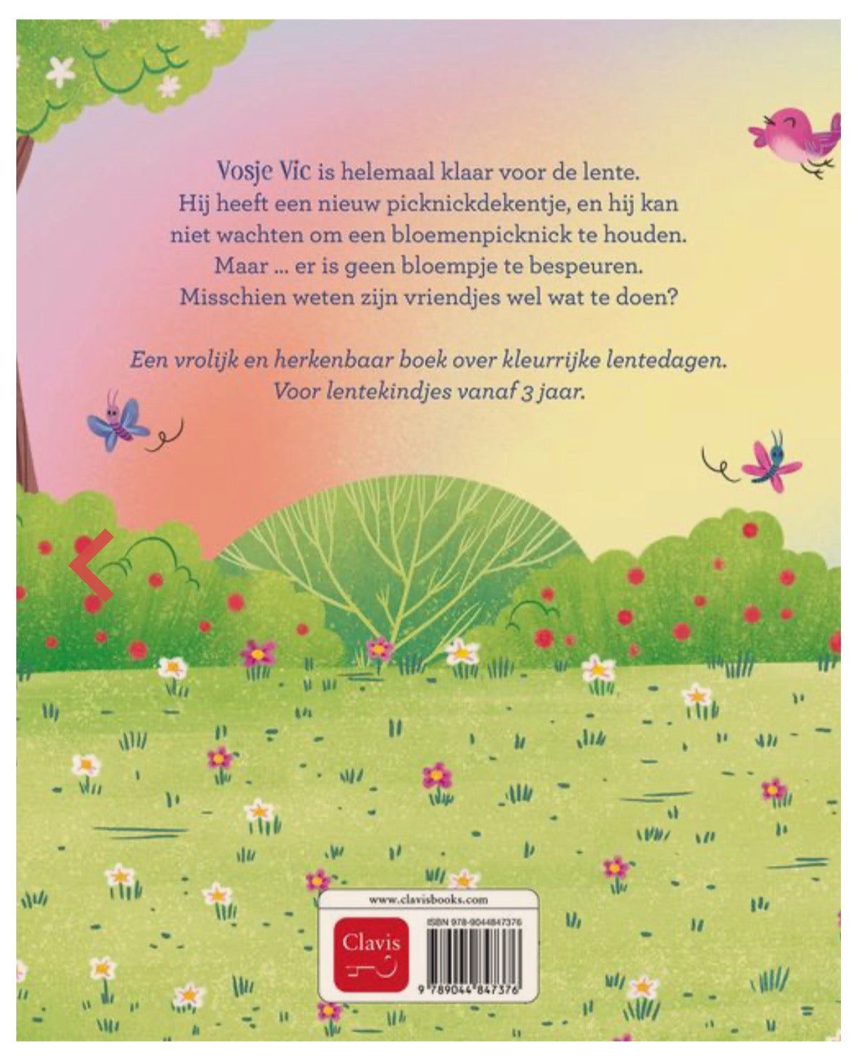 Vosje Vic is helemaal klaar voor de lente. Hij heeft een nieuw picknickdekentje, en hij kan niet wachten om een bloemenpicknick te houden. Maar … er is geen bloempje te bespeuren. Misschien weten zijn vriendjes wel wat te doen?