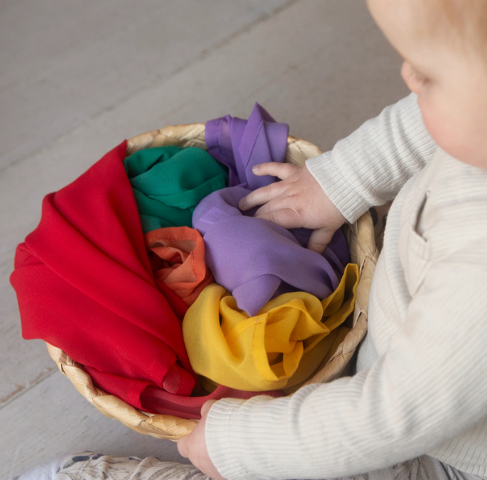 Deze kleurrijke speeldoek is niet zomaar speelgoed, maar een verbindend speelelement: perfect voor kiekeboe spelletjes, als zwierrok tijdens het dansen of als magische cape in rollenspel. Dreumesen, peuters en kleuters spelen steeds opnieuw, op eindeloos veel manieren met deze magische speeldoeken. Van de eerste stapjes tot de kleuren leren en héél veel rollenspel.