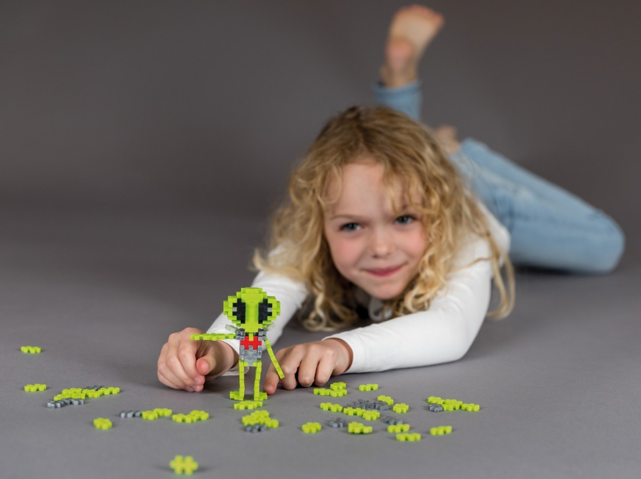 Duik in een buitenaards avontuur met onze Plus-Plus Alien Tube en creëer je eigen alien. Deze Plus-Plus set bevat 100 kleurrijke, creatieve bouwstenen in een praktische buis. Zo kunnen de bouwstenen gemakkelijk en compact worden vervoerd, opgebouwd en weer opgeborgen – ideaal voor thuis en onderweg. Stapsgewijze instructies voor het bouwen van een alien zijn inbegrepen in de set. Bouwers zijn niet gebonden aan het voorgestelde figuur; ze kunnen hun creativiteit de vrije loop laten.