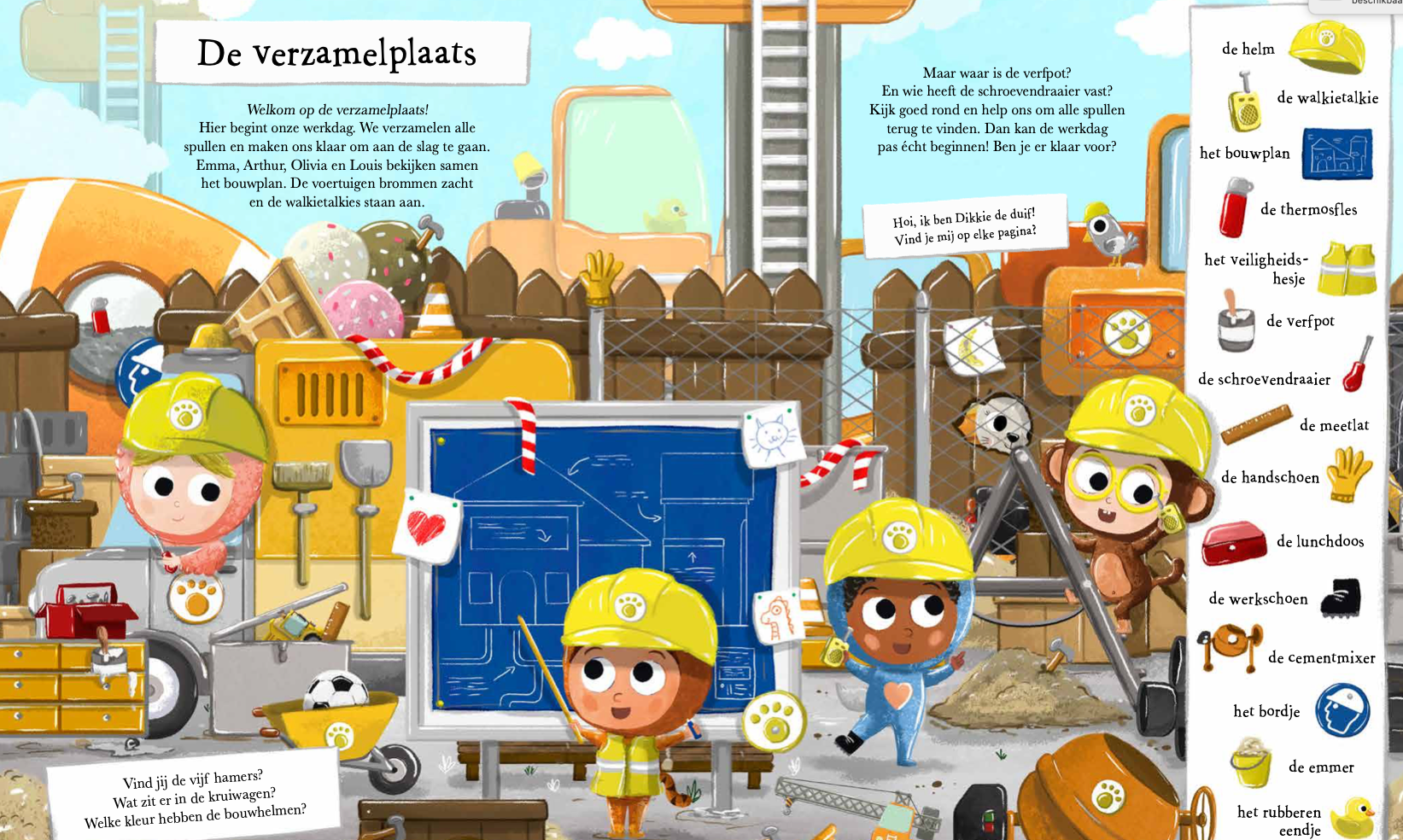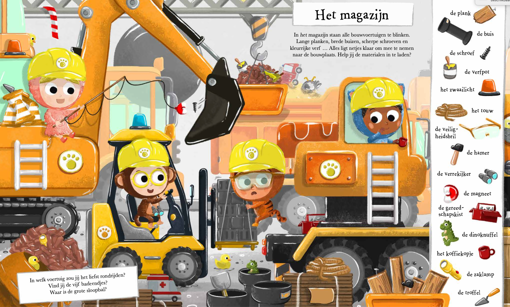 Een leerrijk en grappig zoekboek vol stoere voertuigen en heerlijke bouwchaos. Voor kleine beestjes en grote bouwers vanaf 3 jaar.