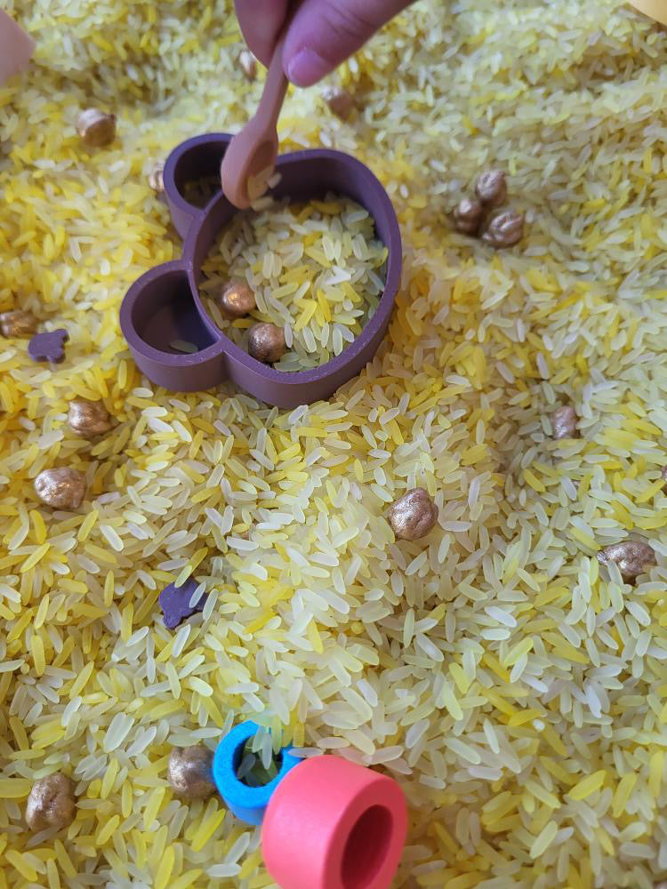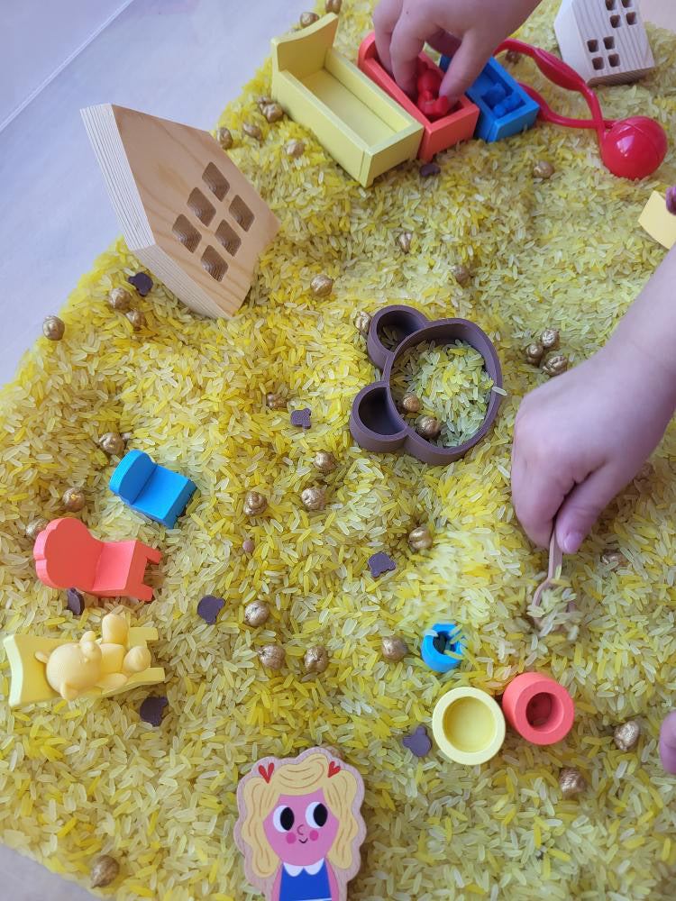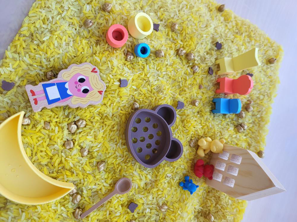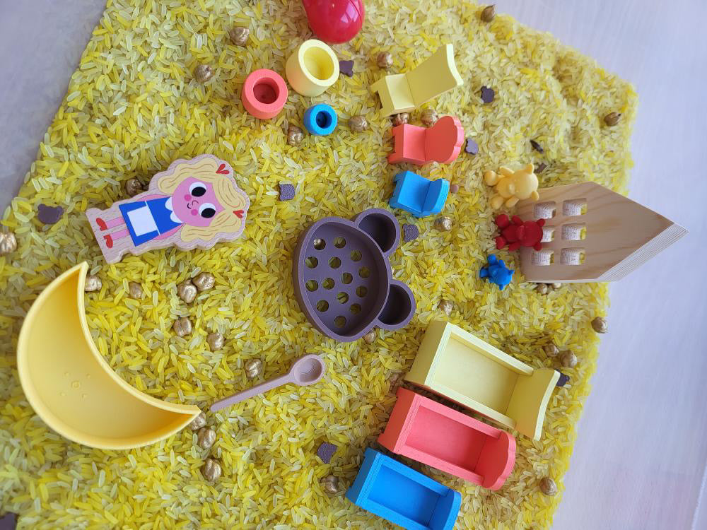 Deze sensory box zorgt voor rust en ontspanning bij je kind. Die kan zelf alle materialen ontdekken en spelen met zowel de sensorische materialen als experimenteren met de speelmix, playfoam, zeefje, figuren goudlokje en de 3 beren, ... We hebben er extra educatieve elementen aan toegevoegd zodat je de box ook kan gebruiken om spelend te leren.