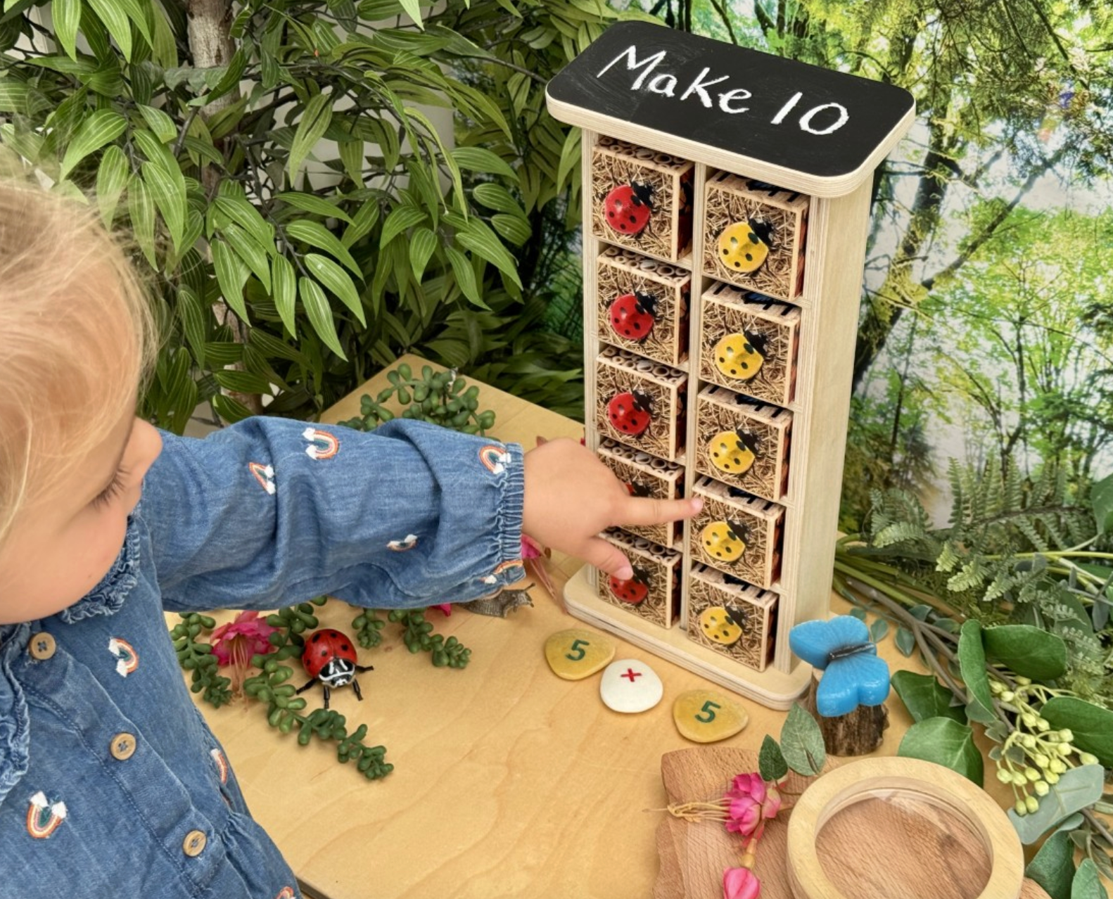 Dit charmante, interactieve insectenhotel is perfect om kinderen te helpen een goed begrip van de getallen tot tien te ontwikkelen door middel van spel geïnspireerd op de natuur.