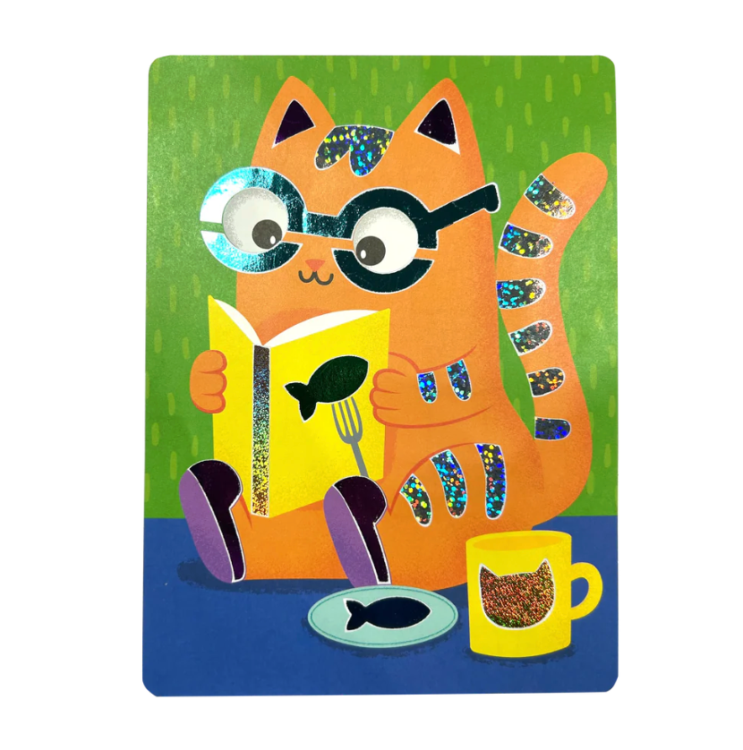 Voeg een vleugje sprankeling toe aan je creativiteit met de Foil-tastic Foil Art & Coloring Set – Meow Moments! Met deze foliekunstset kunnen kinderen schitterende, glanzende ontwerpen maken met gebruiksvriendelijke folievellen en schattige foliekunstkaarten met kattenthema. Trek de folie eraf, druk erop en onthul een schitterende folie-afwerking die elk kunstwerk laat stralen.