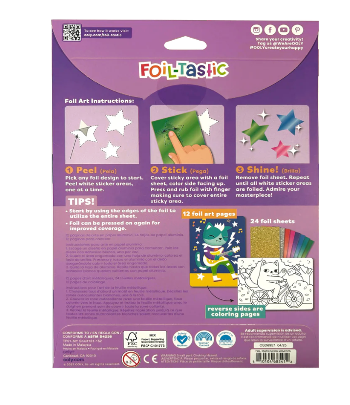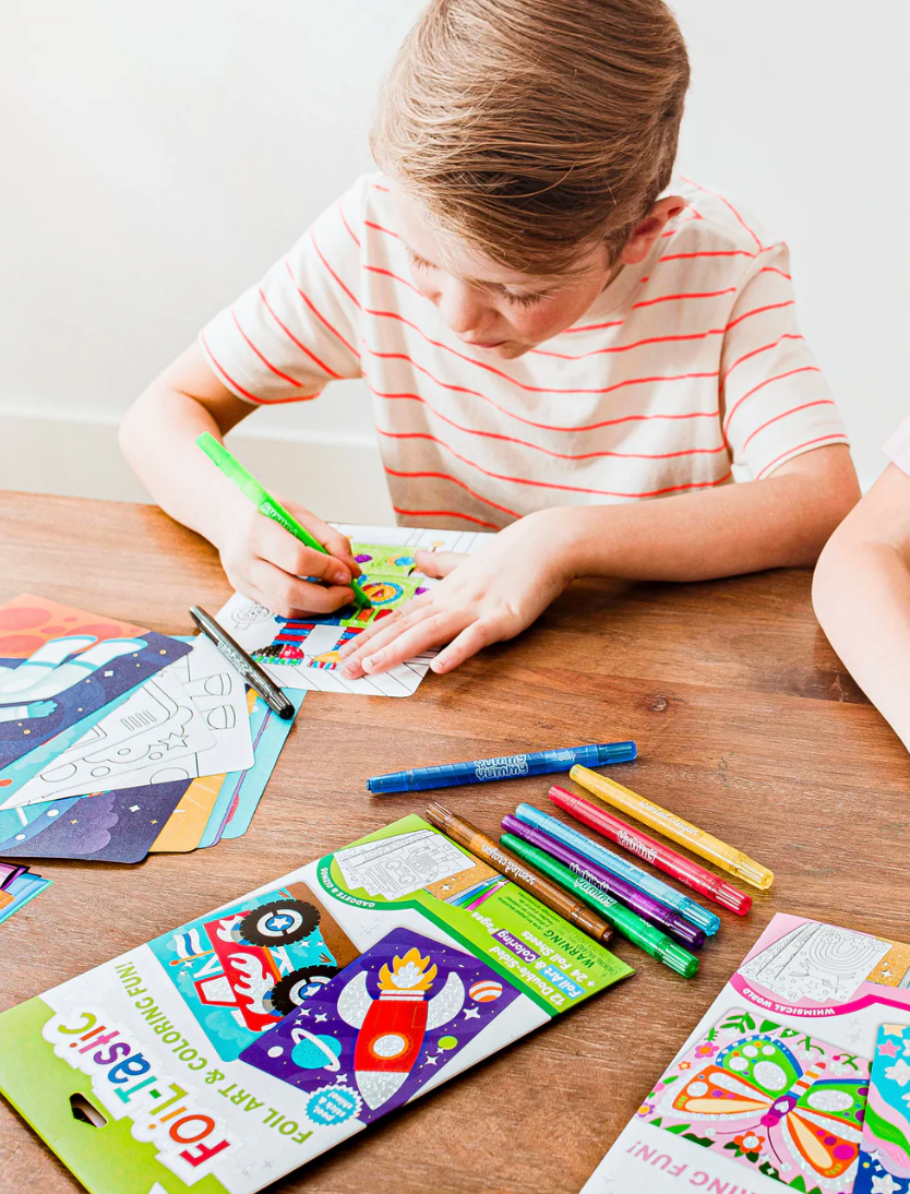 Met zijn schattige kattenontwerpen en glinsterende folie-effecten is de Foil-tastic Foil Art & Coloring Set het perfecte cadeau voor jonge kunstenaars die graag een beetje glans aan hun kunstwerken toevoegen!