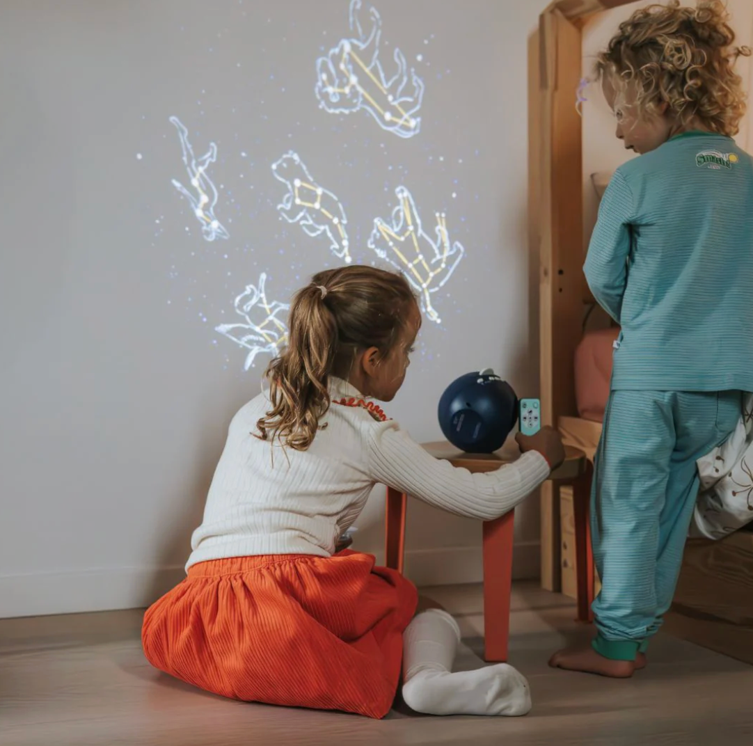 KIDYSTAR is veel meer dan alleen een projector: Het is ook een uitstekend hulpmiddel om een rustgevend bedtijdritueel te creëren, waarbij zacht licht, ontdekking en een moment van verbondenheid met de ouders worden gecombineerd. Een speels en zintuiglijk hulpmiddel dat rust, leren en verwondering combineert.