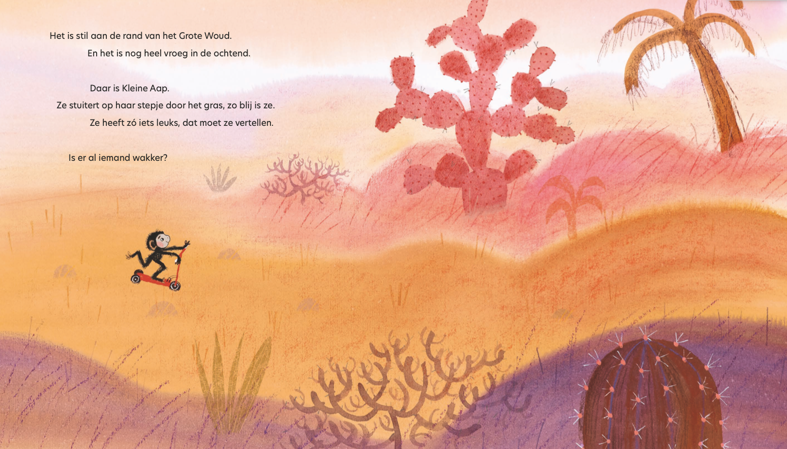 Kleine Aap heeft zo iets leuks, dat wil ze aan iedereen vertellen.