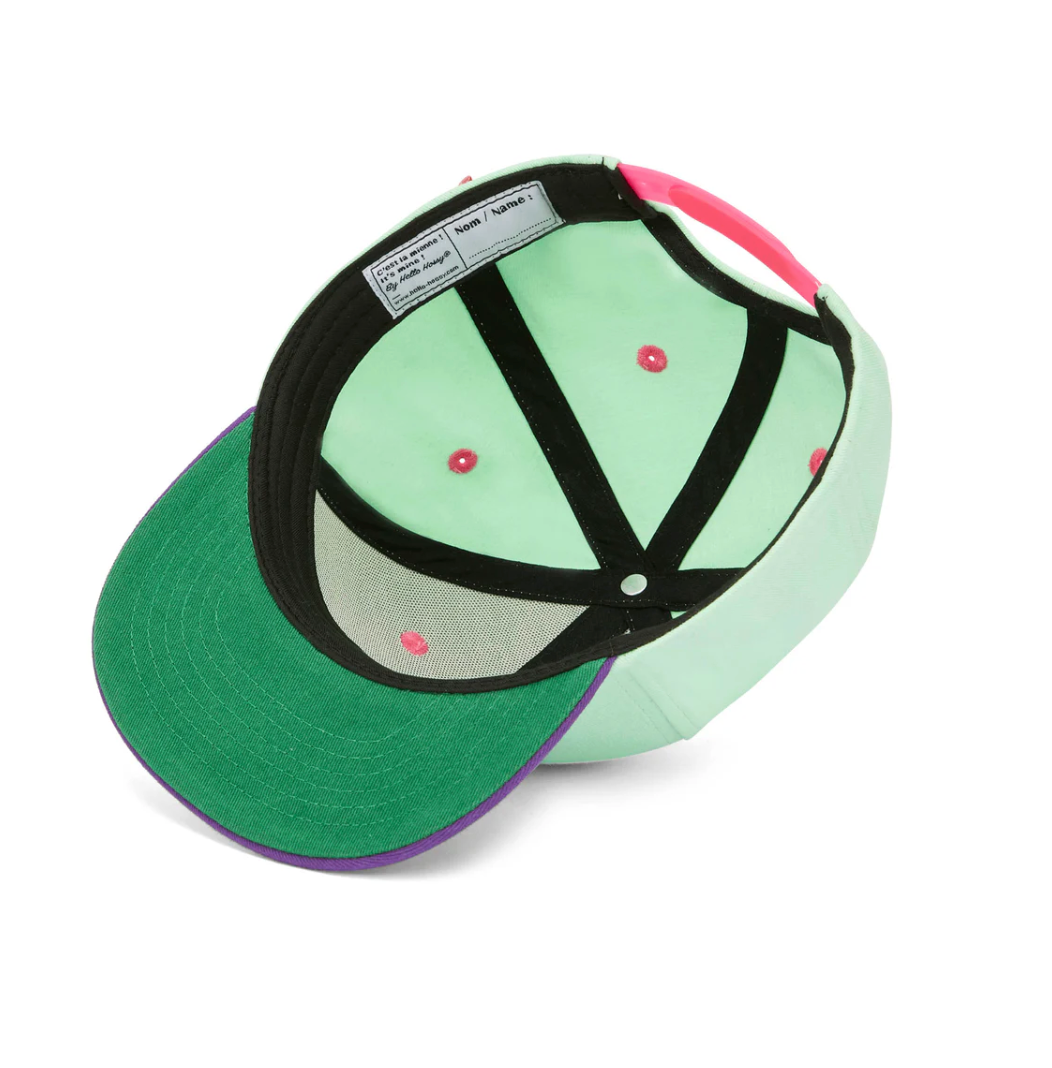Word verliefd op de Mini Mint-pet voor kinderen. Met zijn originele, super kleurrijke uiterlijk zal hij kinderen zeker blij maken. Milieuvriendelijk, een absolute must-have voor zonnige dagen! Mis hem niet.