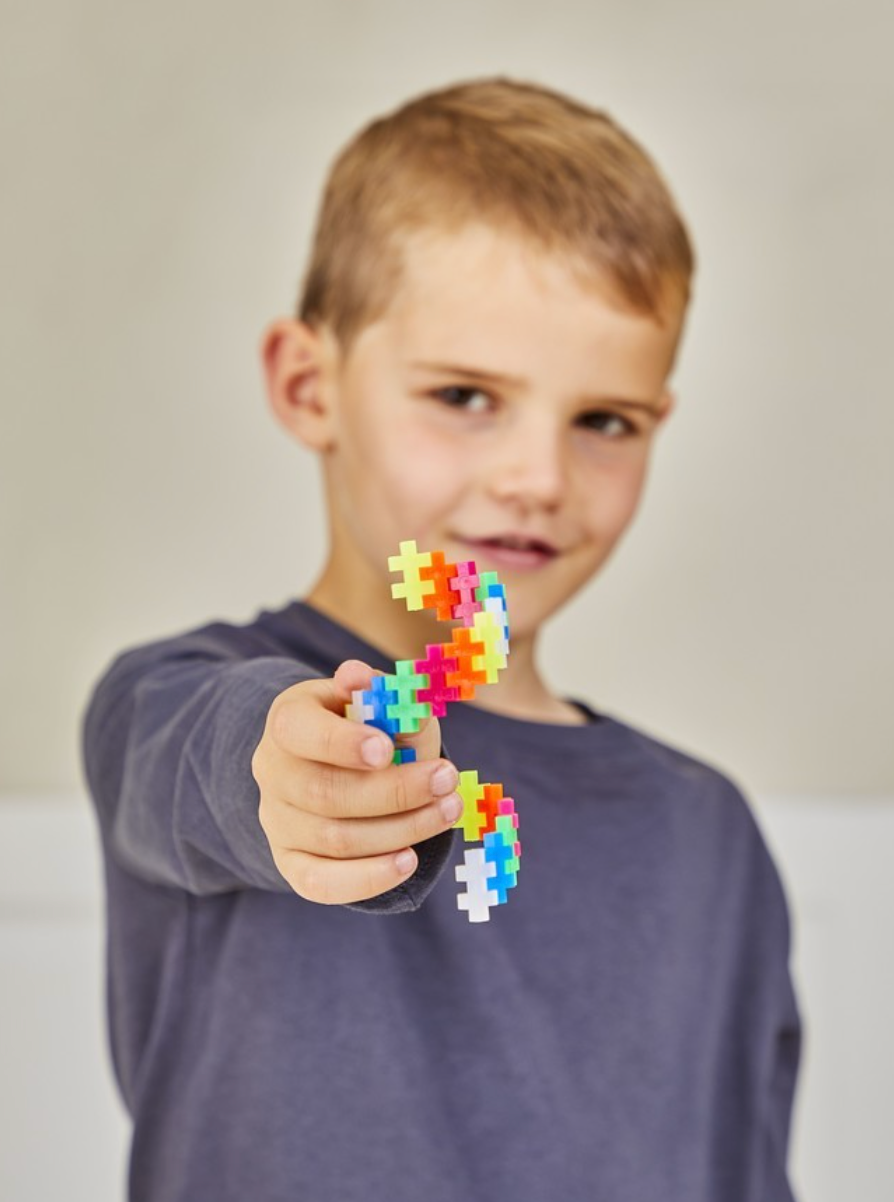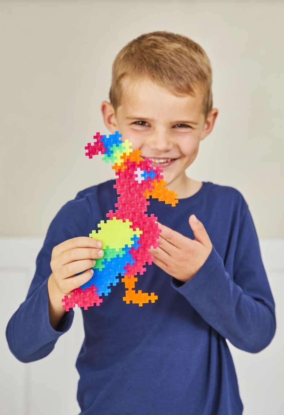 Deze set bevat 300 neonkleurige Plus Plus blokjes. Ideale cadeauverpakking voor bv een verjaardag.