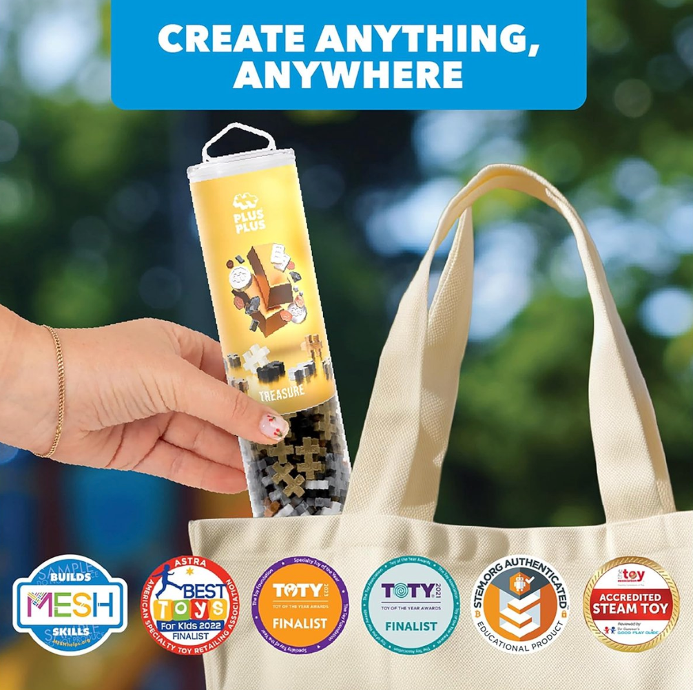 Laat je creativiteit fonkelen met de Plus-Plus Treasure Mix! Deze schitterende set bevat 240 bouwstenen in glanzende metallic kleuren waarmee kinderen alles kunnen bouwen wat ze maar kunnen bedenken – van robots tot ruimteschepen of een fonkelende kroon. De set is ontworpen voor kinderen vanaf 5 jaar en bevat een inspiratietip, maar geen vaste instructies. Zo kunnen jonge bouwers hun fantasie volledig de vrije loop laten.