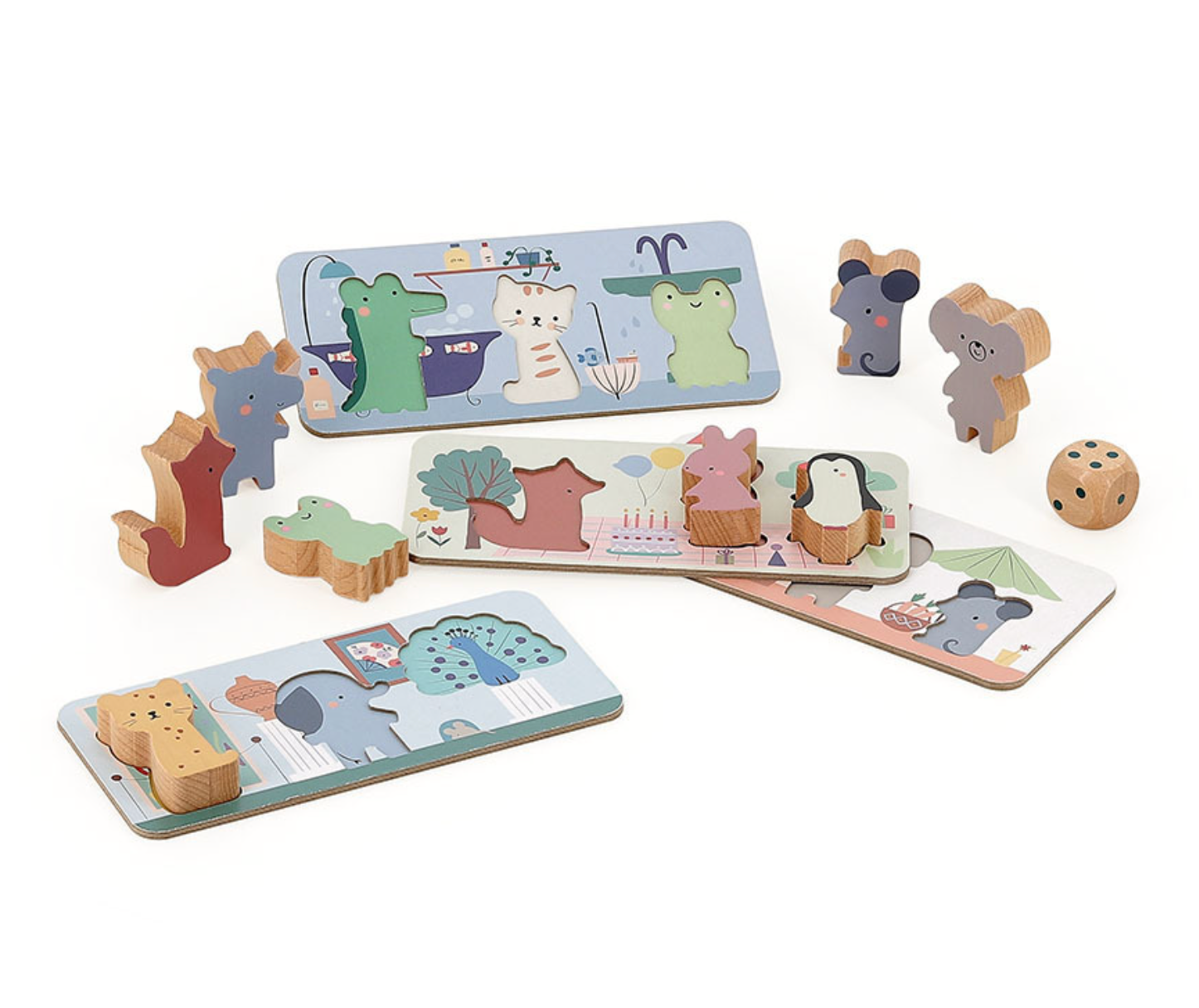 De schattige houten dieren in deze multi-spelset, geïllustreerd door Sarah Betz, zullen je kind vanaf 2 jaar vermaken!