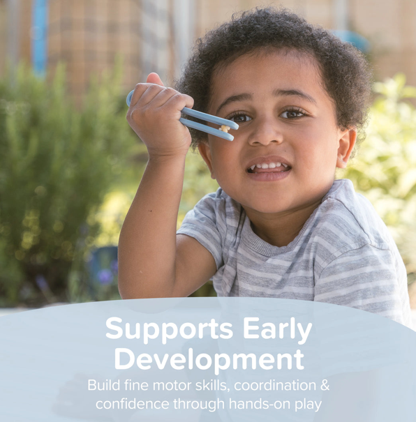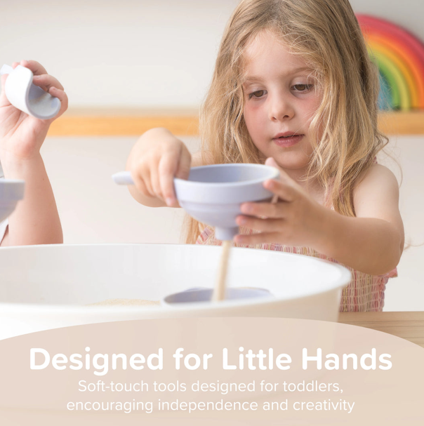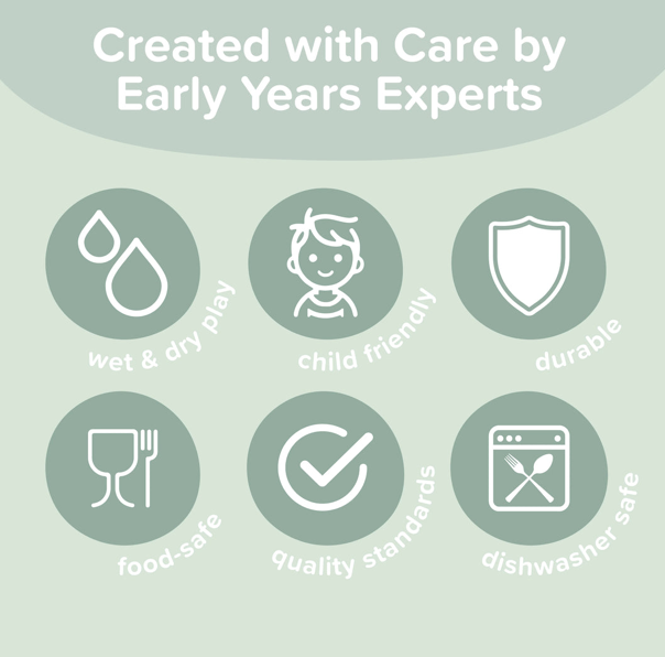 Onze Sensory Play Starter Tool Kit is geschikt voor kinderen van 2 jaar en ouder en past perfect bij onze meervoudig bekroonde PlayTRAY.