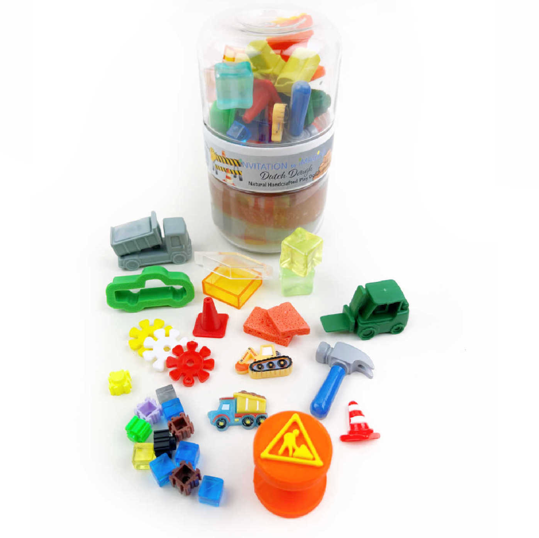 Deze complete speelsets voor onderweg bevatten 240 g Natural Dutch Dough Play Dough + een kleine BIO-uitsteker of BIO-stamper + een deksel vol leuke thema-items om kleintjes urenlang te vermaken!