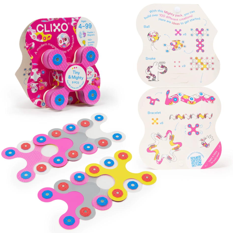 Clixo Tiny & Mighty is een compacte, innovatieve magnetische bouwset die groots speelplezier biedt in een handzaam formaat. Deze 9-delige set laat kinderen op een intuïtieve manier 2D- en 3D-creaties bouwen dankzij de unieke combinatie van flexibele vormen en sterke magneten.