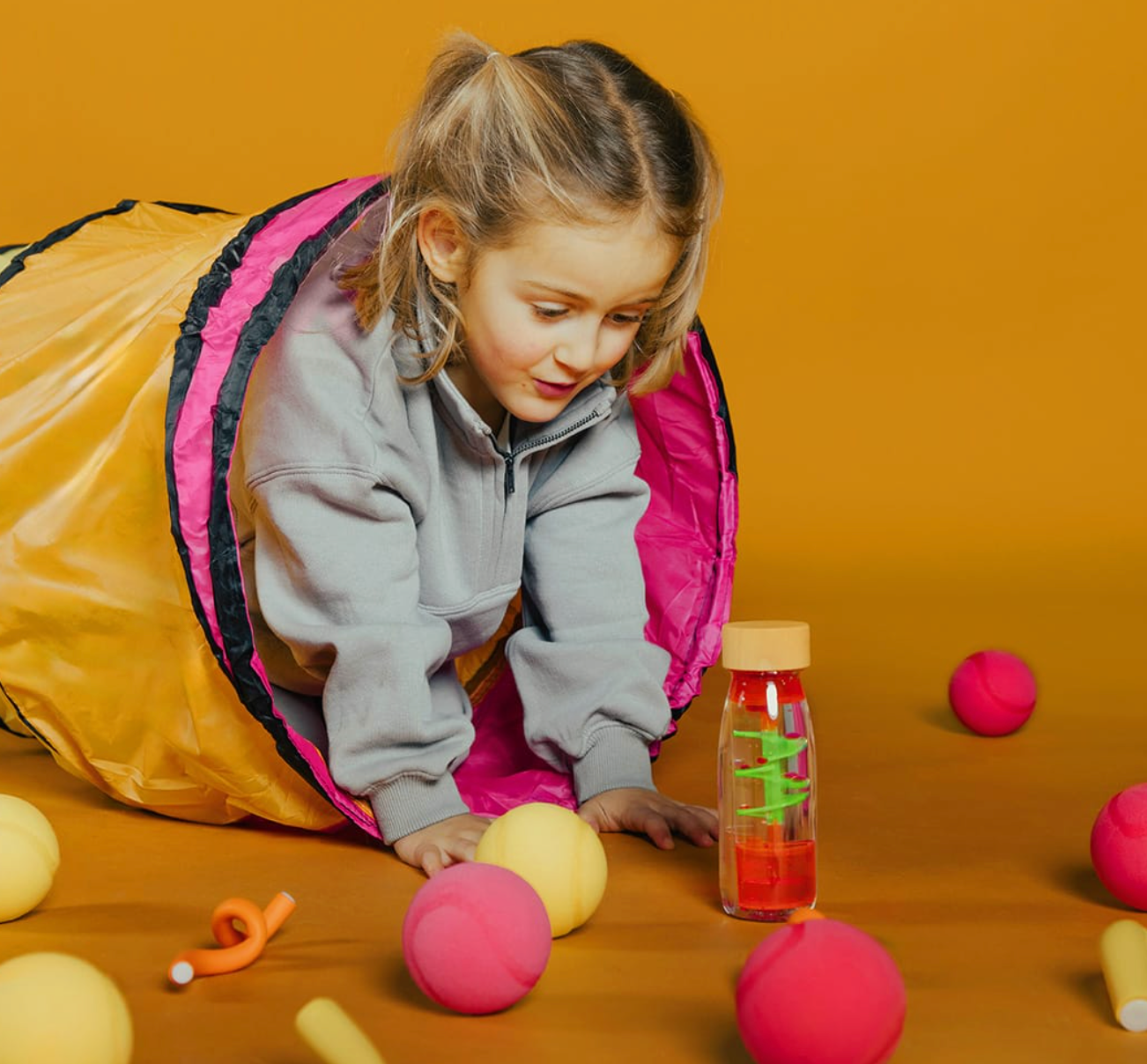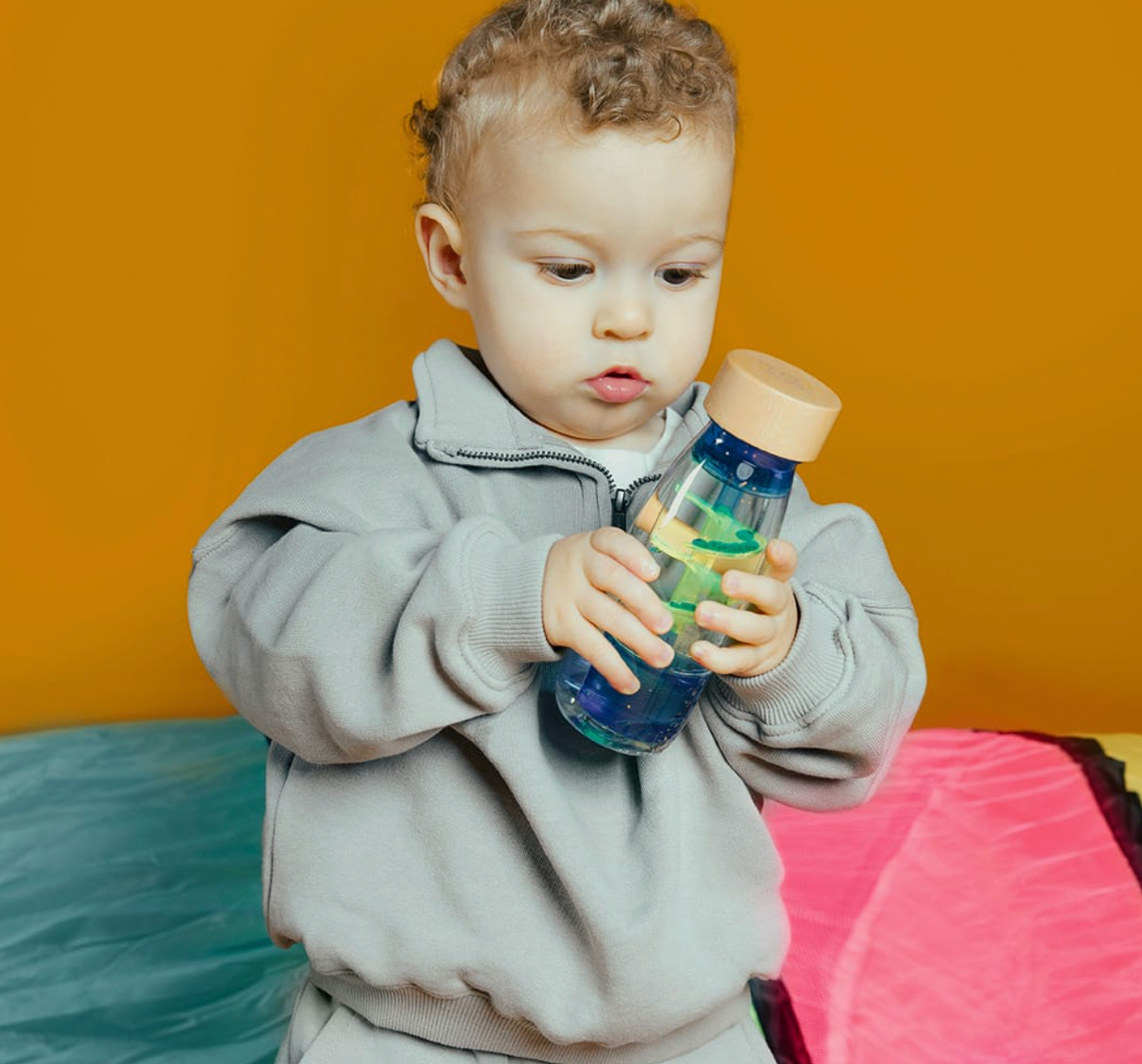 Een kalme en meeslepende dans. Een zachte visuele dans van kleurrijke druppels stimuleert de zintuigen en bevordert ontspanning en plezier bij de kleintjes.