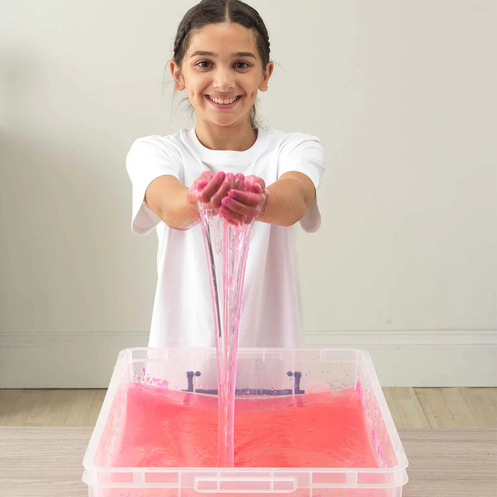 slime Baff maakt van je water op een veilige manier een kleverig, knusse bak vol slijm. Door gewoon meer water toe te voegen, kan het slijm worden verdund tot gekleurd water dat gemakkelijk kan worden afgevoerd. Slime Baff is verkrijgbaar in een reeks spannende kleuren en effecten en is het perfecte product voor rommelig en multisensorisch spel!