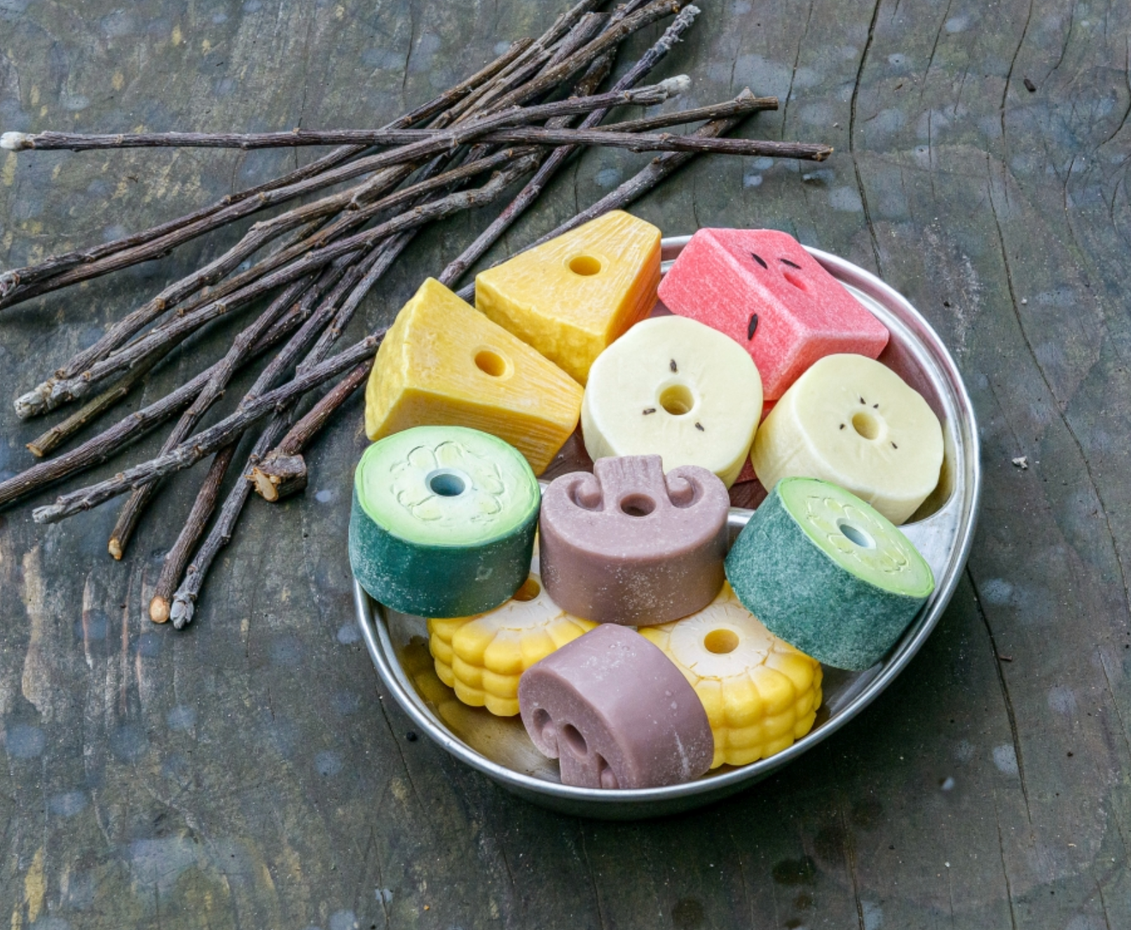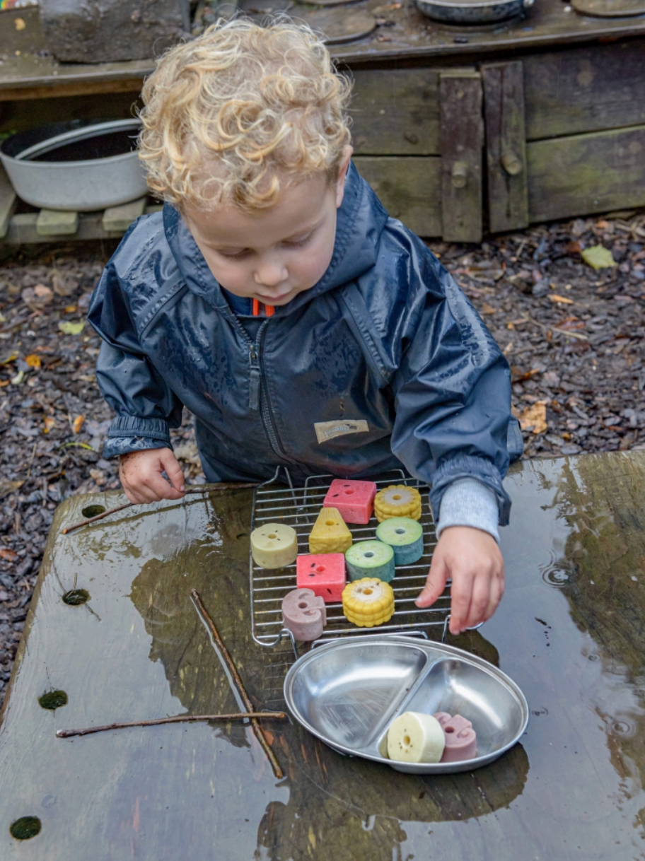 Deze voedselsteentjes zijn gemaakt van een mix van steen en hars, zijn stevig en gemakkelijk schoon te maken, waardoor ze een ideale aanvulling zijn op elke modderkeuken of speelhoek.
